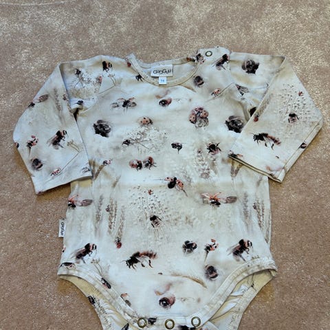Uusi/käyttämätön Gugguun frillabody sävyssä snow koossa 74.