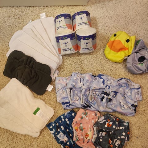 Kestovaippoja 21kpl ja lisäimuja 9kpl, kokoja S, M ja L