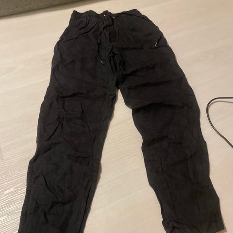 Selling an old but unused pair of black linen pants, size S with small white details.