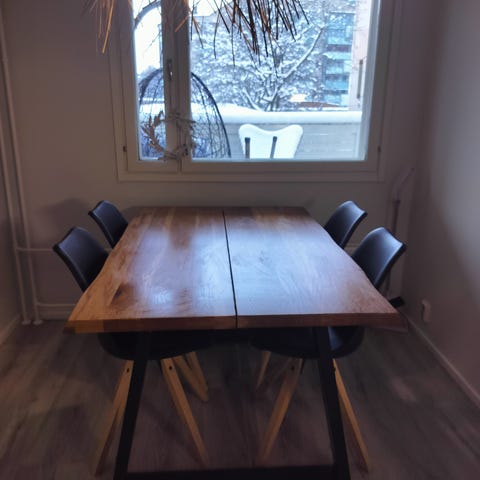 Painava Tammipöytä 140 x 90 sekä jatkopala 60 = 200x90cm.