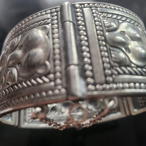 Kunto kuin uusi, mitä nyt patinoitunutta hopeatummentumaa koko korussa, kun korulippaassa maannut vuosikymmeniä.