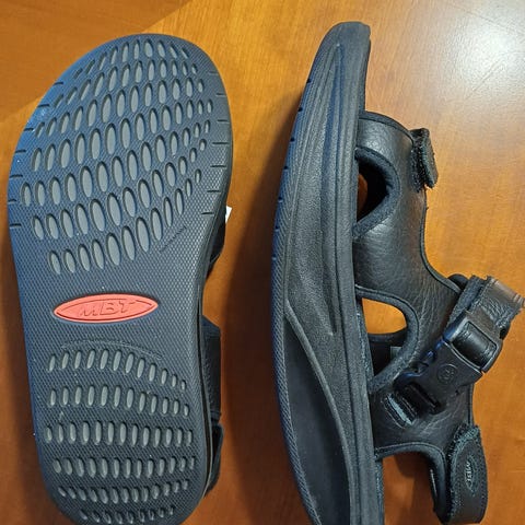 Siistit vähän käytetyt MBT-sandaalit, jotka ostin ennen vaivaisenluuleikkauksia turvaamaan kävelyn onnistuminen niin ennen kuin jälkeen leikkauksien.