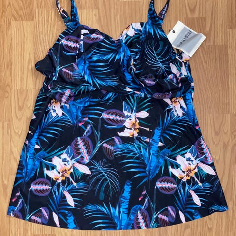 Kotimainen Erbel, uusi uima-asu. Kirjava tankini ja musta alaosa. Koko 46 ja tankinin koko 46 C. Tupakoimattomasta ja allergiavapaasta kodista. Postitus ja nouto, molemmat sopii.