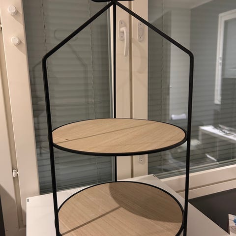 Tarjottimen voi purkaa osiin säilytystä varten. Pestään käsin. Alimman lautasen halkaisija 22 cm ja kokonaisuuden korkeus noin 22 cm.