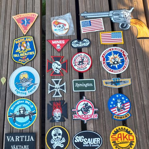 70-luvulla ostettujen aseiden mukana tulleet kangasmerkit.