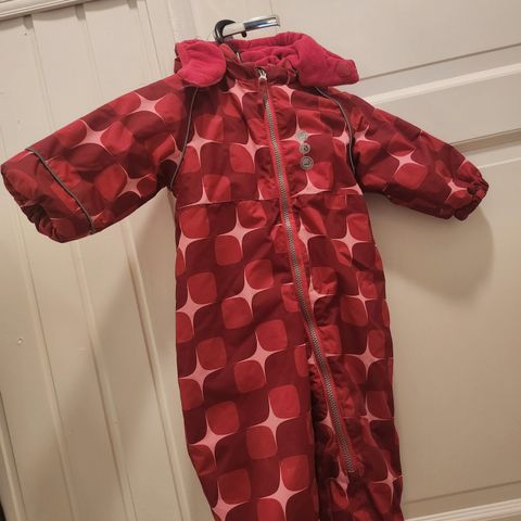 Haalari on hyväkuntoinen, mutta kulumaa on havaittavissa. Polvissa (kuva 3) on pehmentymää ja pepun alueella (kuva 4) hieman myös. Kangas ja ompeleet ovat tarkastamani mukaan koko haalarissa ehjiä. Nimikoimaton.