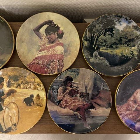 Puron ylitys, Kalan paistajaiset kesäyössä, valtakuntien rajapyykki, Inarinjärven rannalla.Arabia 1983. Yhteensä 10€. Andreas Alariesto.