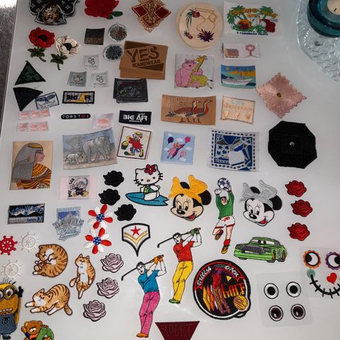 Erilaisia silitettäviä kangasmerkkejä