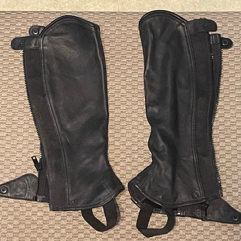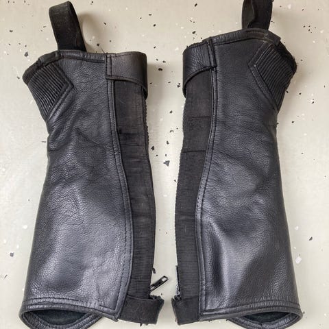 Ehjät ja hyväkuntoiset ruskeat nahkasapsit. Korkeus sisäsyrjältä 42cm, ympärys 34cm. Ehjät vetoketjut. Vetoketjun vieressä venyvä kaistale, joka takaa hyvän istuvuuden.