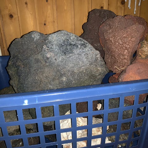 Kuvien mukaiset laavakivet 9kpl, joista 8 täysin uusia ja yhdessä hieman liimaa toisella puolella kiveä.