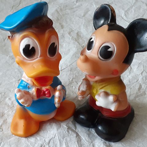 Myydään kaksi vintage Disney figuuria: Aku Ankka ja Minni Hiiri. 1970-luvulta. Korkeus noin 16cm. Yhteishintaan 40e.