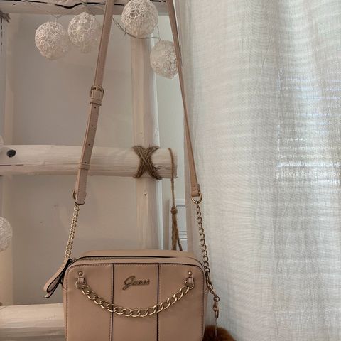 Guess Silvana käyttämätön naisten käsilaukku olkahihnalla, vetoketjulla ja sisätaskuilla. Mitat: leveys 32 cm, korkeus 28 cm, syvyys n. 10 cm. Väri konjakin ruskea.