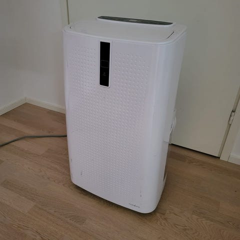 Tästä tehokas siirrettävä ilmastointilaite uuteen kotiin muuton tieltä! Laite ollut kolme kesää meikäläisella, joista kahtena olen käyttänyt sitä aktiivisesti. On pitänyt 28 m^2 yksiön hyvin viileänä. Laite itsessään toimii moitteetta mutta poistoputki alkaa hieman hapertua. Mukaan tulee myös muutama lyhyempi putki lisää jos haluaa askarella ja kikkailla ilmanoton kanssa. Myös ikkunantiivistyssetti tulee mukaan, jota en kuitenkaan itse ole käyttänyt. Kondenssiveden poistamiseen en ole tarvinnut astiaa, liika kosteus poistuu poistoputken kautta. Kaukosäädin mukana ja etänä saa myös säädettyä sovelluksen avulla!