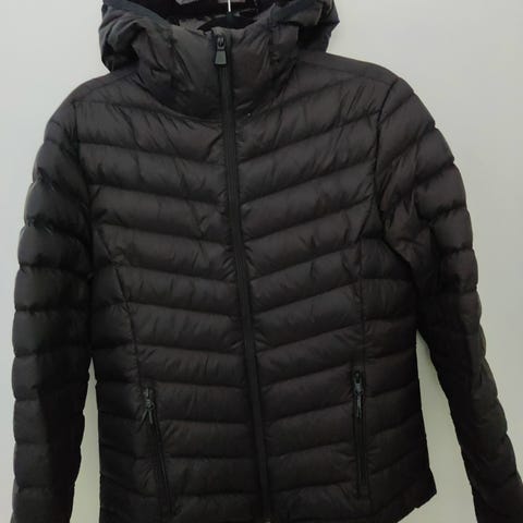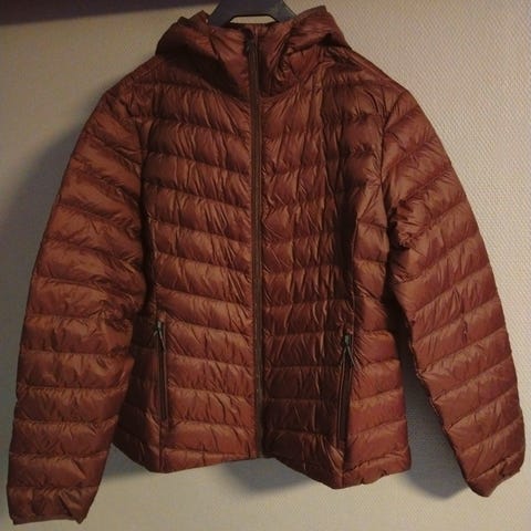 Uusi kevytuntuvatakki kokoa 38C. Prismasta ostettu London Fog merkkinen. Takin täyte 90% untuvaa, 10% höyhentä. Takkia vain sovitettu, muttei ollutkaan mieluinen. Laput otettu pois