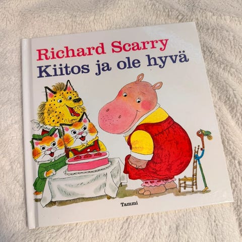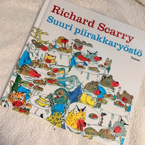 Myyntiin hyväkuntoinen Richard Scarryn kuvakirja Masi ja Pasi, kaksi kalamiestä. Sarjaan kuuluu muitakin ammateista kertovia kirjoja.