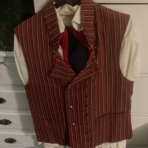 Miesten kansallispuku. Liivi ja polvihousut.