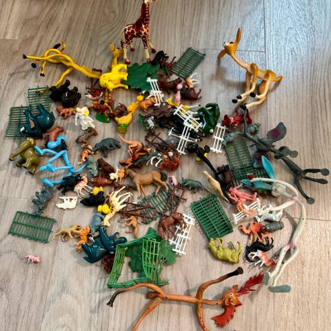 Pussillinen erilaisia eläinfiguureja. Leikittyjä, kulumaa. Keräilyyn tai diy-projektiin.