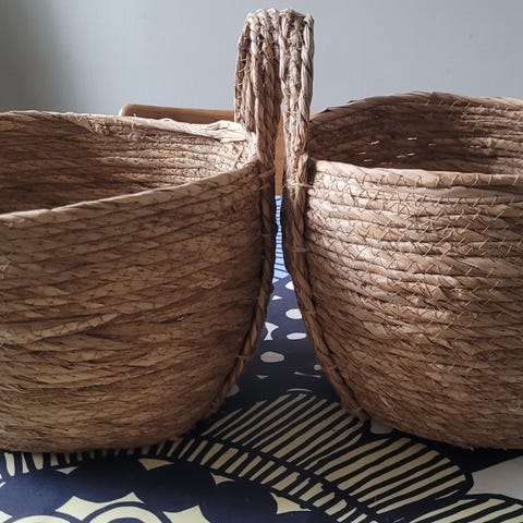 Kolme mustaa säilytyskoria. Kahdesta korista tuo yksi osa repsottaa, ei haittaa käyttöä. Kissatalous.