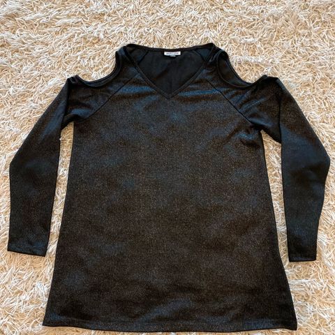 Mustan värinen kimaltava pusero esimerkiksi loppuvuoden juhliin! :) Kangas on kevyttä ja hihoista läpikuultavaa. Puseron hiha- ja alaresorissa on kuminauhat.