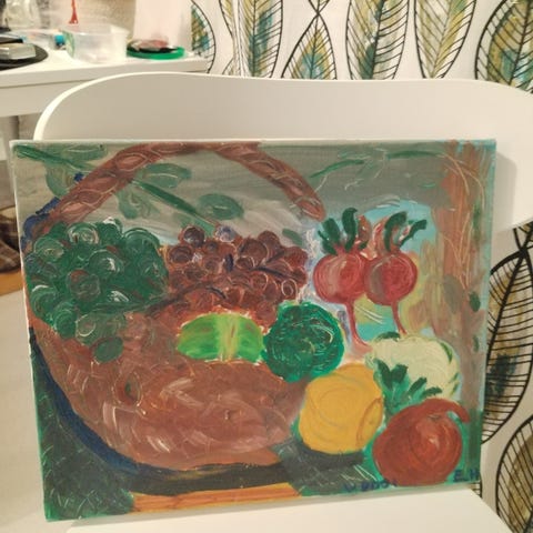 Myydään kuvan mukainen uniikki iirikset -aiheinen öljyväri- / akryylimaalaus.
