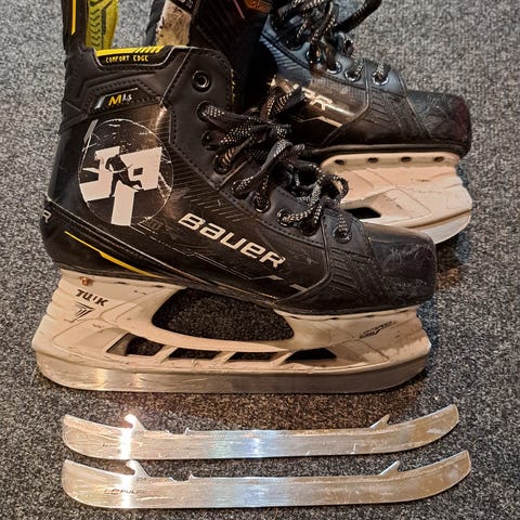 Bauer Supreme M4, comfort edge. Hyvä kuntoiset luistimet. Pari kautta pelattu. Mukaan vaihtoterät, nyt on bjørn hockeyn terät kiinni, jotka ovat hyvässä kunnossa. Postitus onnistuu. Koko 3.5/36.5
