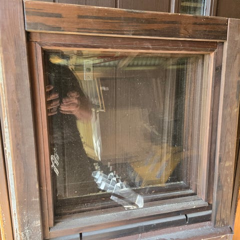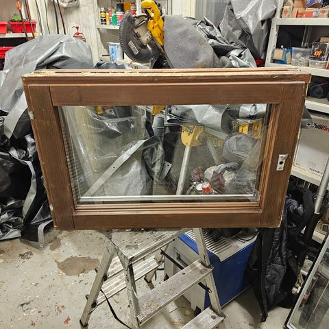 Läpinäkymättöllä lasilla olevia ikkunoita vaikka ulkosaunaan tai muuhun toissijaiseen käyttöön. Ruskeita molemmin puolin.