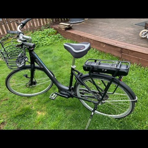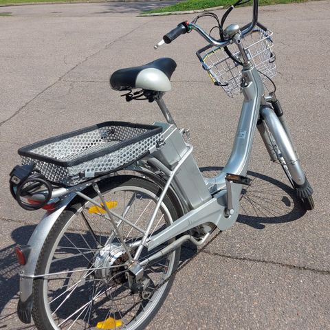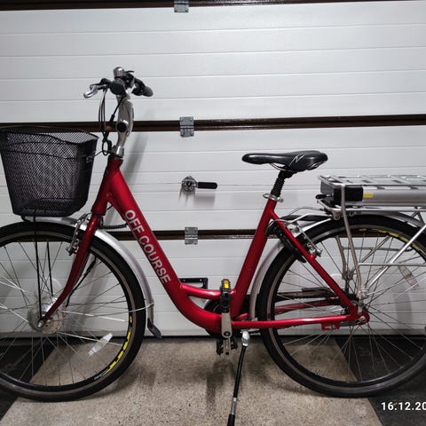 Jälkiasennettu sähkömoottori. Kevyt polkea työmatkat ja kauppareissut.