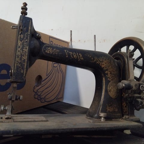 Tikkakosken vanha ompelupöytä ja ompelukone. Ikäisekseen hyvässä kunnossa. Käsin pyörittäessä toimii.