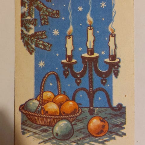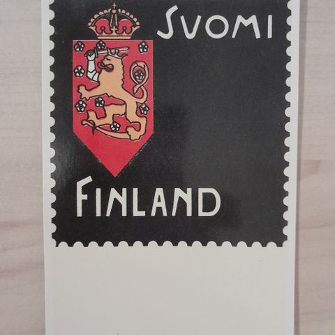 Kirkkaankeltainen postikortti, jonka etupuolella lukee isolla: