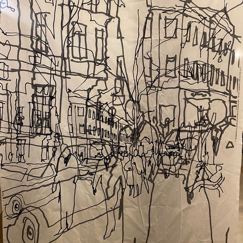 Kuvien mukainen oikein hyväkuntoinen kangas, josta on kaikki sivut ommeltu. Voi käyttää pöytäliinana tai verhona. Ei omaan sisustukseen oikein sopinutkaan. Säilytyksessä rypistynyt.