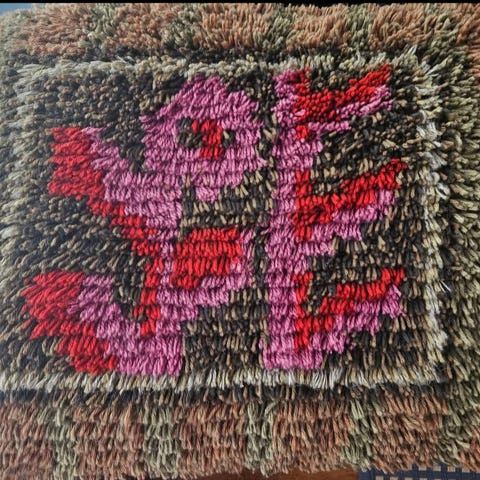 Näyttävä matto / ryijy. 100% villaa 55 x 100 cm Sopii seinälle tai lattialle