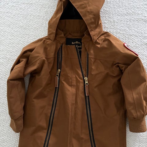 -Hyväkuntoinen Mini Rodini Pico haalari välikauteen, metallinapeissa aavistus kulumaa ja lapsen nimitarrasta jäänyt haalarin sisäpuolelle niskalappuun jälki