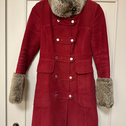 Klassinen, laadukas pitkä villatakki/ pitkä jakku, koko 36, vasta enemmän kokoa 34. Takasaumassa on halkio.