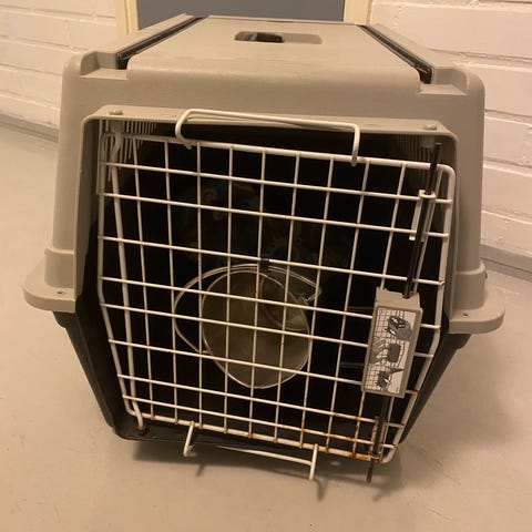 Tiaki koirankuljetuslaatikko, koko L. Sopii koiran kuljetukseen mm. lentokoneessa. Mitat: kork 75, lev 61, pit 92,5 cm. Kerran käytetty. Mukana pyörät.