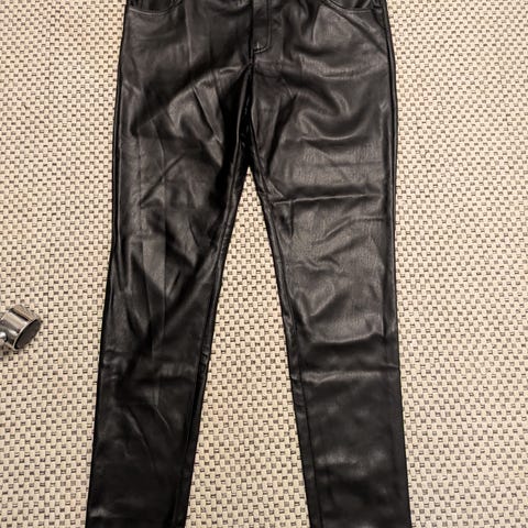 Myydään erittäin hyvässä kunnossa olevat, vain vähän käytetyt NLY Trend -keinonahkahousut, koko 34 (S)