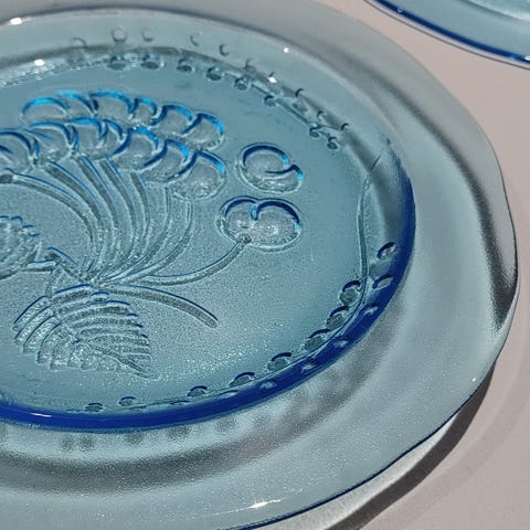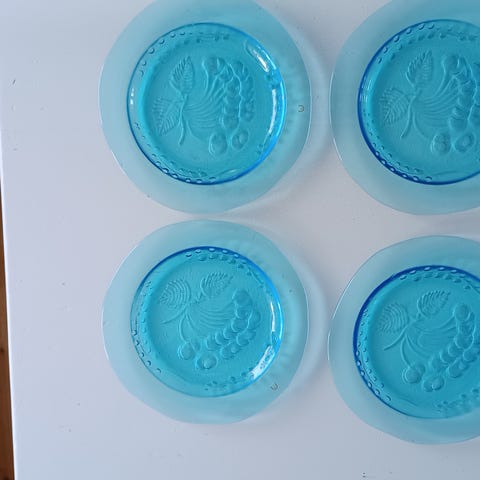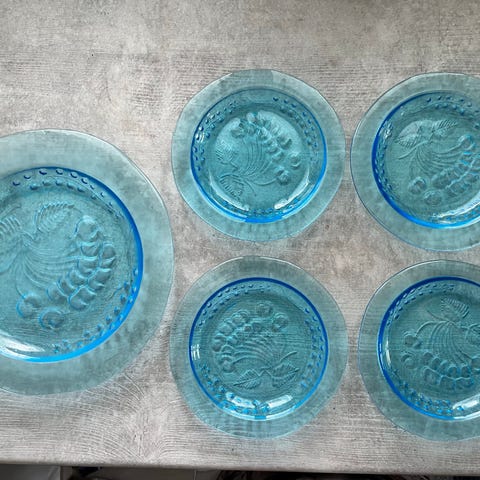 Humppilan lasi. Sininen lasilautanen. Tutti frutti. Nanny Still. N.25.5cm
