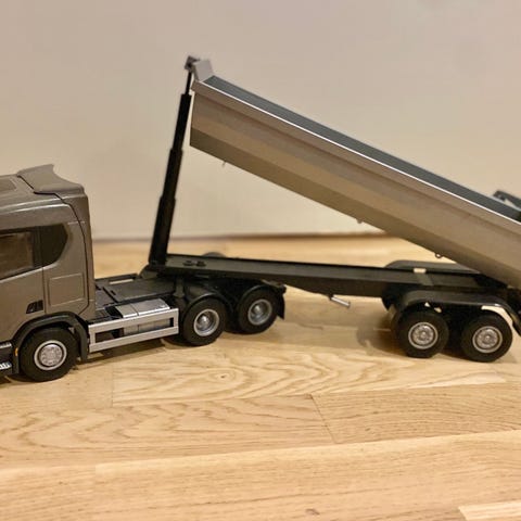 Emek Scanian kuorma-auto lasten lelu. Sininen ja valkoinen väri, kuorma-auto ja lumihiutalekuvioinnit. Sopii lasten leikkeihin ja keräilyyn.