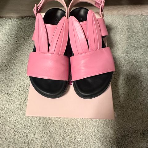 Muutaman kerran käytetyt Minna Parikan Hop-sandaalit. Laatikon kannessa repeämä, muttei ole haitannut varastointia.