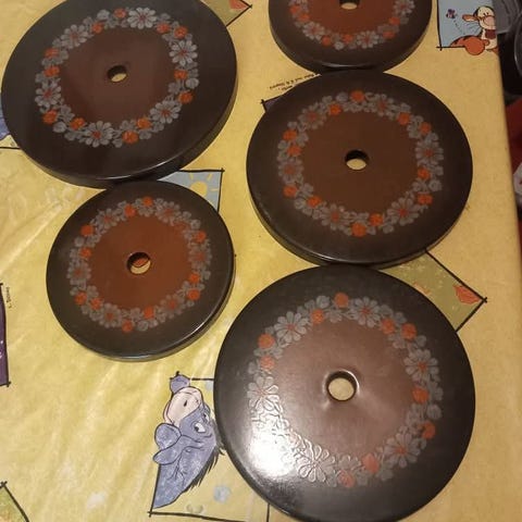 Kuvan suojat, kunto ok. Halkaisiat 20 cm ja 16,5 cm. Raija Uosikkinen.
