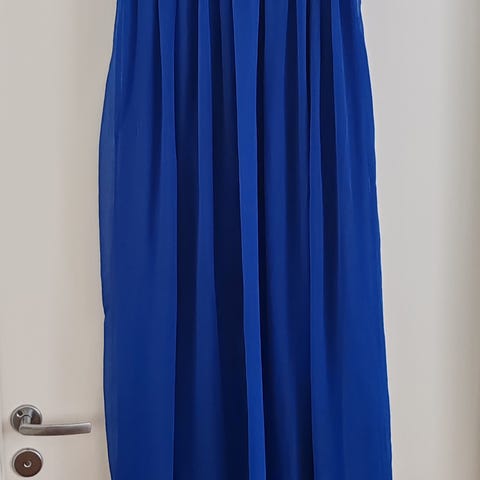 Kaunis farkunsinisellä pohjalla valkoisilla kuvioilla oleva viskoosimekko myyntiin. 5% elastaani. Uudenveroinen. Kai-kai n.40cm ja olka-helma n.85cm. Venyvää materiaalia. Hyvä koolle S/M.