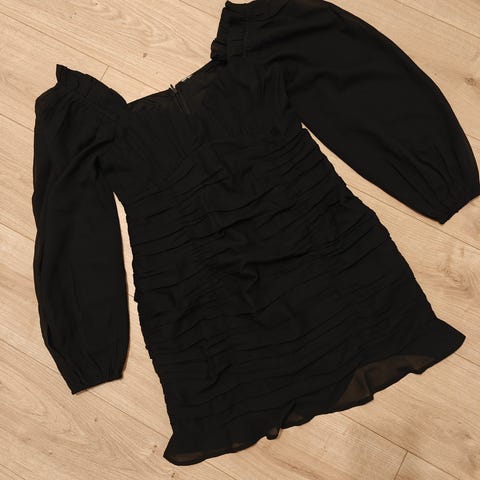 Pitkä musta collarimekko ,printti edessä. Koko L. Suora leikkaus. Ostettu Lontoolaisesta nettikaupasta. Sovitettu,muutoin Käyttämätön.