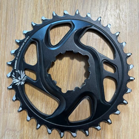 Paljon kilometrejä vielä omaava Sramin 32 hampainen ovaali eturatas. Eagle X-Sync 2 teknologialla ja 6mm offsetilla. Alumiininen ja kevyt.