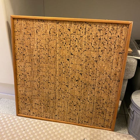 Korkkitaulu puisilla kehyksillä. Käytössä ollut joten jälkiä on. Kuitenkin mielestäni ihan hyvä kunto. Nastat saa halutessaan mukaan 1€ lisähintaan. Mitat kuvissa.