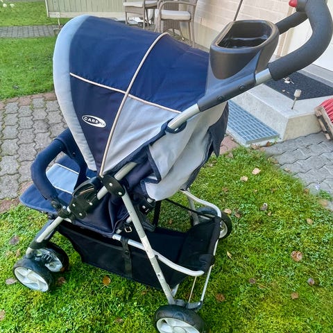 Kokoontaitettava lastenrattaat, punainen väri, kevyt materiaali. Sopii lapsille, helppo käsitellä ja taitettava säilytystä varten. Varustettu aurinkosuojalla ja turvavyöllä. Vain pari kertaa käytetty. Hinta 15 e + pk.