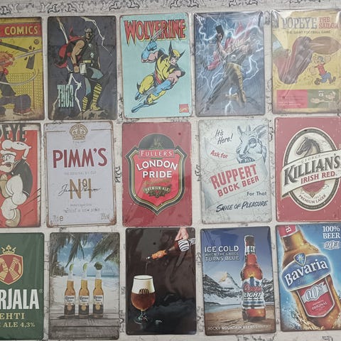Peltitaulu missä lintu ja lintuhäkki beigellä pohjalla. Kuvan reunat hieman repsottavat mutta liimalla saa taas paikoilleen. Mitat kuvissa.