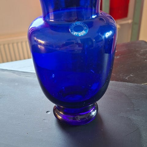 Harvinainen malja, huomaa upea kalan muotoinen jalka.