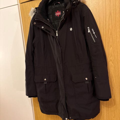 Áhkká áphiTec5.5 Muu takki, koko 50, sininen väri. Takki on valmistettu 53% puuvillasta ja 47% polyamidista, vuori 100% polyesteriä. Soveltuu ulkoiluun ja arkikäyttöön. Takissa on huppu ja vetoketjulliset taskut. Kunto siisti, takana alhaalla helmasta pari pientä repeämää korjattu.