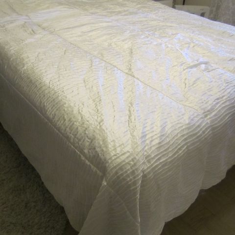 Asko Bonell päiväpeitto kooltaan 260cm x 260cm. Kissa taloudessa ollut niin joitain lankoja purkautunut kissan raapimisesta (esim. kuva 3) ja nukkaantunut ajan saatossa.