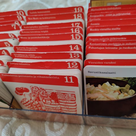Ruoka ja leivonta resepti laatikko.laatikko on ehjä ja myös kortit ehjät ja siistit.