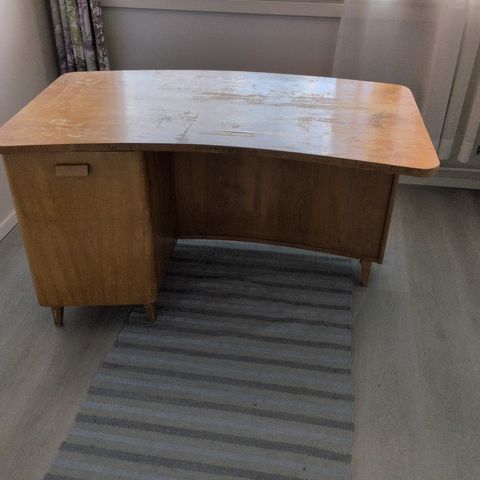Vanha puinen kirjoituspöytä, siisti, verka on kulunut puhki, se on helppo vaihtaa, koska verka-osa on irrallinen levy, mutta uusi verka sisältyy kauppaan, jos väri miellyttää, jos et halua verkaa, alennan hintaa 25 euroa
